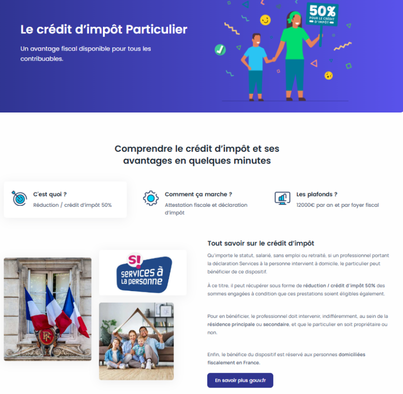 Et grâce à mon partenariat, vous pouvez bénéficier d’un crédit d’impôt sur la prestation.